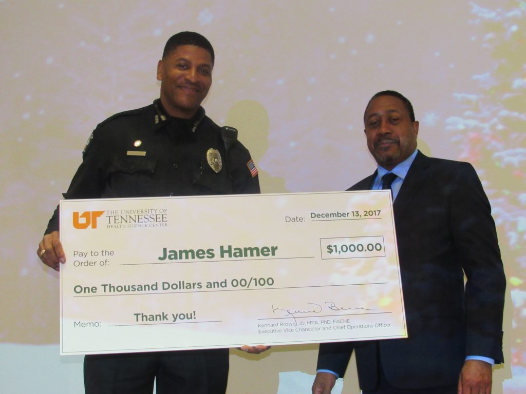He received an award during the organization’s quarterly meeting earlier this month in Denmark, Tennessee, and is the first ever recipient from UTHSC. Hamer was nominated by Sergeant Joanne Morrow of the UTHSC Campus Police Department.