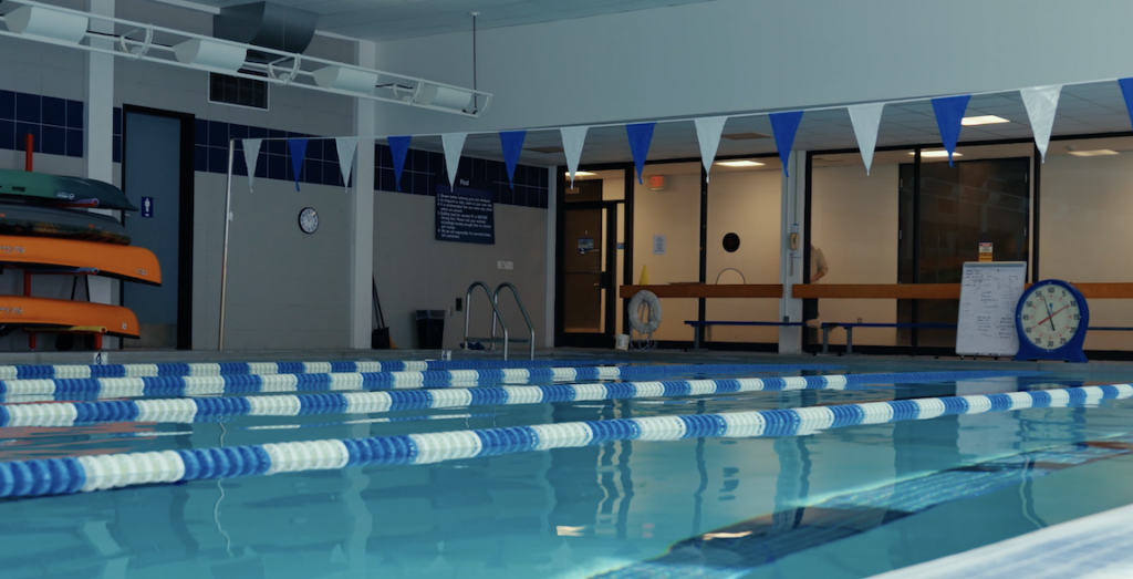 The Fitness Center offers a weight room and cardio room with free weights, circuit machines, and cardio equipment; three exercise studios, including a yoga studio, a Pilates room with four Stott Pilates reformers; a group cardio room; a pool; basketball gym with volleyball, pickleball, indoor soccer, and basketball courts; table tennis, badminton, and racquetball; and a bouldering wall.