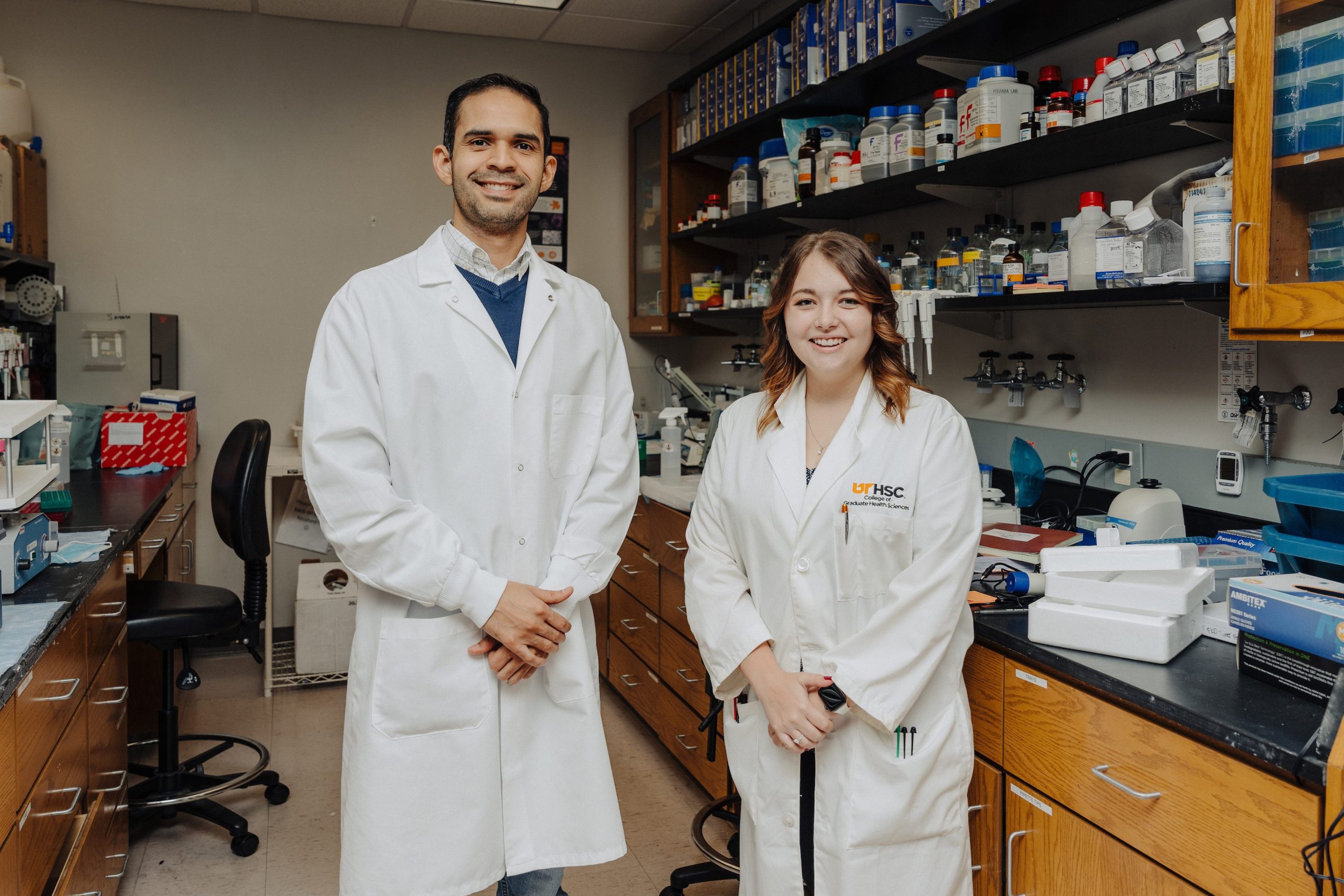The two are making substantial strides in a collaborative independent research project funded by the College of Graduate Health Sciences’ Student Self-Directed Research Funding Initiative.