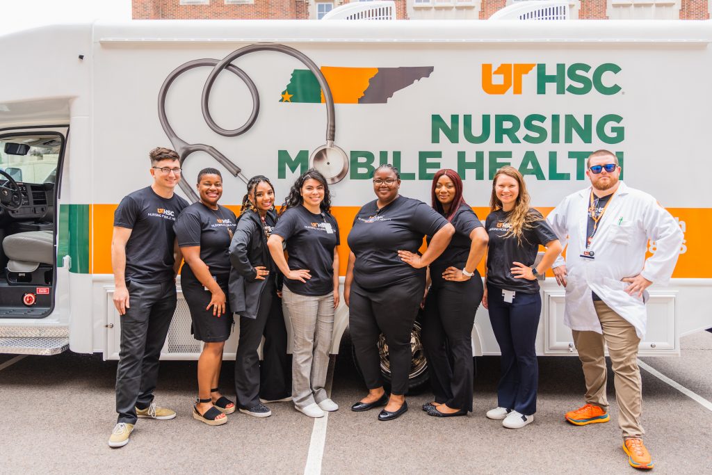 Academic, political, and community leaders; nursing professionals; and students gathered today at the University of Tennessee Health Science Center to celebrate the unveiling and ribbon cutting for the UTHSC Nursing Mobile Health unit, which will help expand health care in two rural West Tennessee counties.