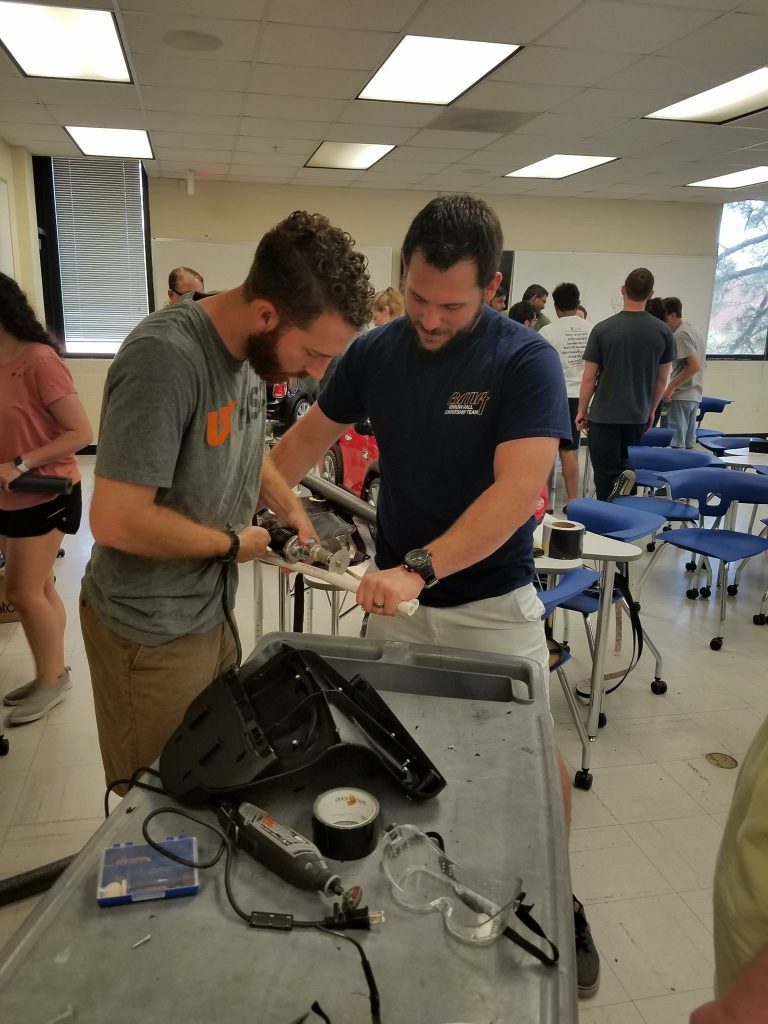 Some families, including Wyatt’s, have driven hours to work with the students on custom fitting the cars.