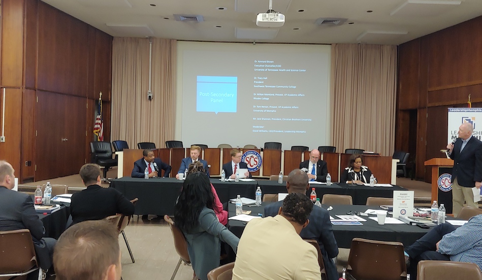 Dr. Brown joined leaders from the University of Memphis, Rhodes College, Christian Brothers University, and Southwest Tennessee Community College for a panel on post-secondary education. All agreed that higher education institutions play a significant role in ensuring the city is a good place to live and that its youth are prepared for the workplace of the future.