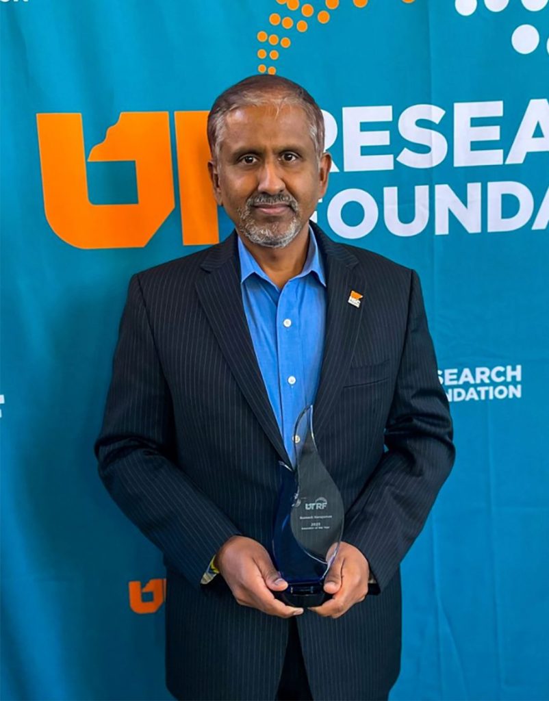 Ramesh Narayanan, PhD, MBA, professor in the Department of Medicine, and Eric Muirhead professor of Pathology, won the Innovator of the Year Award and served as the keynote speaker for the event. Dr. Narayanan, who also serves as deputy director of the UT Health Science Center’s Cancer Center, is known for his research on small molecule drug discovery, translational oncology research, and his focus on the fundamental mechanisms of action for diseases, therapeutic targets, and new chemical entities.